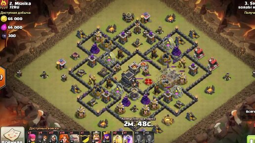 Атаки на КВ миксом 9 тх на три (вальки голем маги)