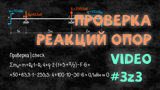Проверка реакций опор балки с помощью суммы моментов относительно точки