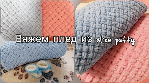 Вяжем плед. Узор плетенка из alize puffy