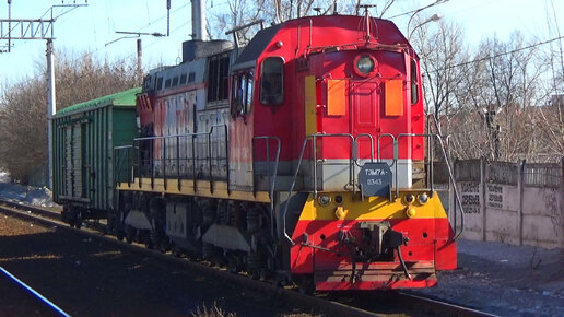 Тепловоз ТЭМ7А-0343 с одним крытым грузовым вагоном на станции Электроугли
