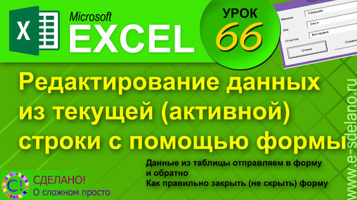 Excel. Урок 66. Форма для редактирования данных в текущей строке (Полная версия)
