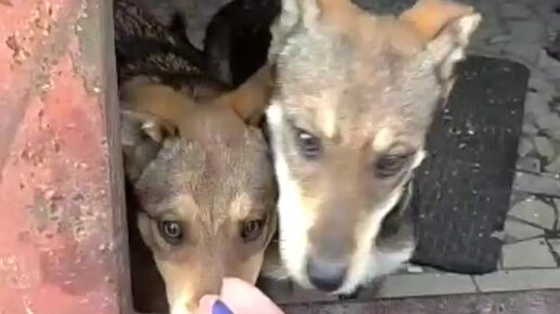 Застрявшим между гаражами щенкам пришел на помощь спасательный десант из приюта