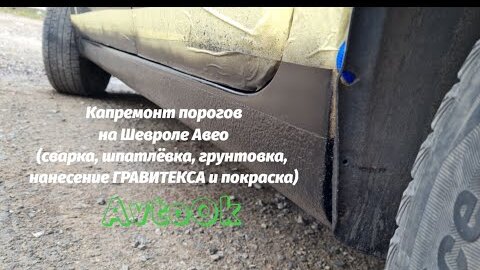 Капремонт порогов на Шевроле Авео (сварка, шпатлёвка, грунтовка, нанесение ГРАВИТЕКСА и покраска)