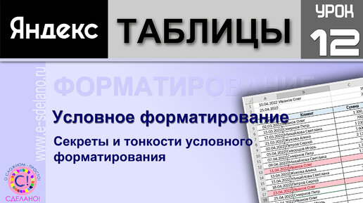 Яндекс таблицы урок 12. Секреты и тонкости условного форматирования