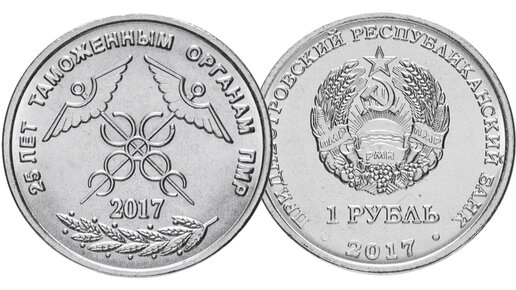 Монета 1 рубль Приднестровья 25 лет таможенным органам ПМР.