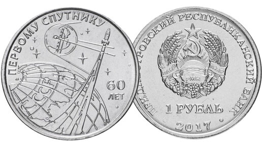 Монета ПМР 60 лет запуску первого искусственного спутника Земли.