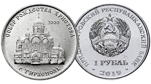 Монета 1 рубль Приднестровья Собор Рождества Христова.