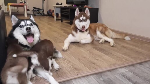Щенки ХАСКИ Борзые Щенки НАПАДАЮТ НА ПАПУ ХАСКИ