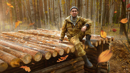 Закончил стены и крышу. Основная работа сделана. Землянка в лесу. 7 серия.