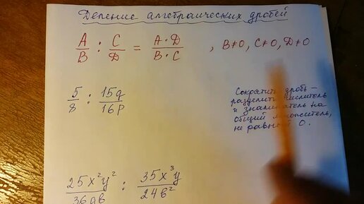 Алгебра 7, 8 класс. Деление алгебраических дробей.