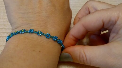 Браслет незабудки з бісеру, прикраси з бісеру, літній браслет з бісеру. Beaded bracelet