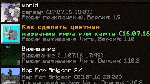 КАК СДЕЛАТЬ ЦВЕТНЫМ НАЗВАНИЕ МИРА ИЛИ КАРТЫ В МАЙНКРАФТЕ