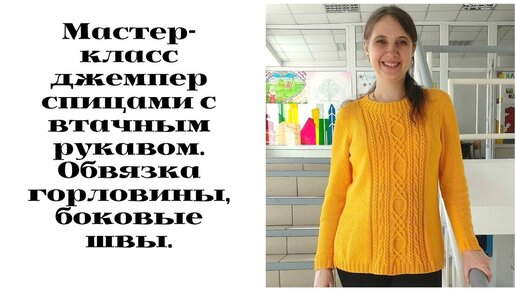 МК джемпер спицами с втачным рукавом. Обвязка горловины, боковые швы.