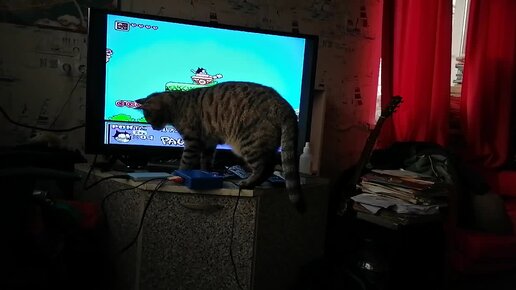 Хозяин играл в "Кота Феликса", и кошке стало очень интересно