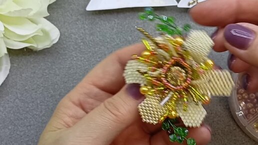 Брошь ЦВЕТОК из бисера. Учусь плести бисером.