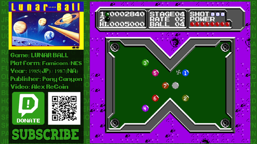 Бильярд (Lunar Ball) - Денди (Famicom NES) - 9 мин геймплея - Без фильтров - Alex ReCoin