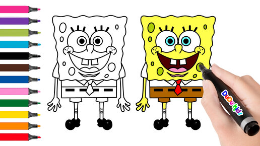 Как Нарисовать Губку Боба. Уроки рисования для детей поэтапно. Обучающее видео. How to draw Sponge Bob Square Pants.