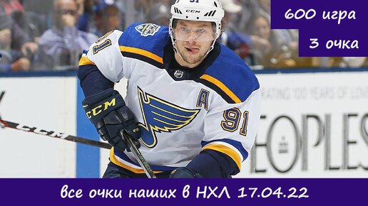 3 очка Владимира Тарасенко в 600-м матче в НХЛ, голы Куликова и Мамина - наши в НХЛ 17.04.22