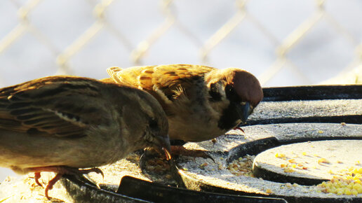 "А что это вы там делаете?": воробей контролирует ситуацию из укрытия
