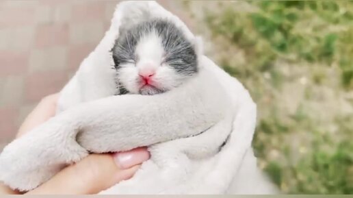Кошка настороженно смотрит на чужого котенка. Примет ли она его в семью