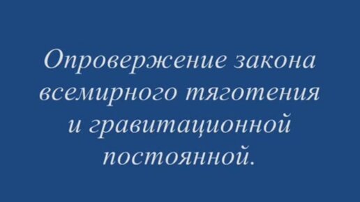 Опровержение закона всемирного тяготения и гравитационной постоянной.