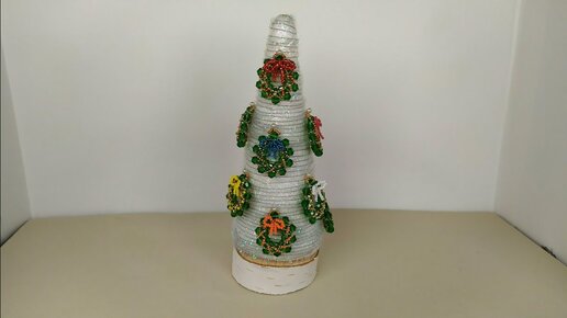 Работы из бисера. Быстрая ЁЛКА. И съедобная ШАПКА. Мастер класс. Пошаговый МК для начинающих.