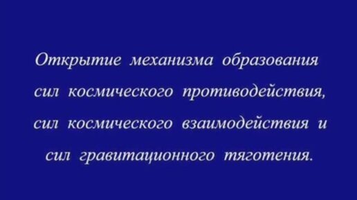 Открытие механизма образования сил космического противодействия, сил космического взаимодействия и гравитационного тяготения.