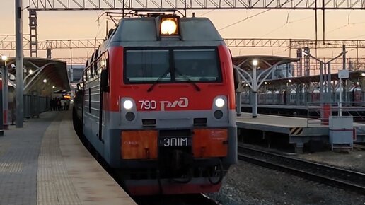 Электровоз ЭП1М - 790 отправляется с пассажирским поездом Круглое поле - Москва