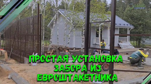 Установка забора из евроштакетника. Забор из евроштакетника. Укладка брусчатки.