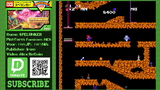 Spelunker - Денди (Famicom NES) - 8 мин геймплея - Без фильтров - Alex ReCoin
