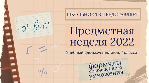 Предметная неделя. Фильм "Формулы сокращенного умножения" 7 класс