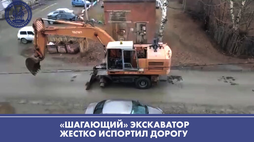 Экскаватор испортил ковшом всю дорогу. В конце видео будет понятен масштаб произошедшего.