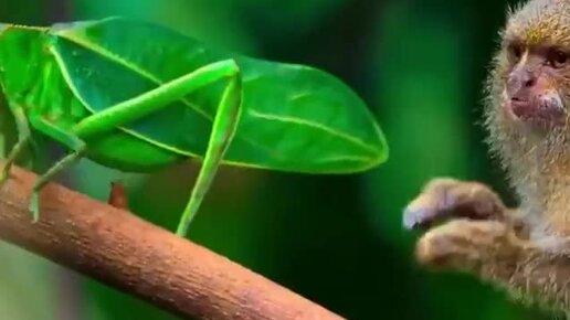 Карликовая мартышка впервые увидела насекомое