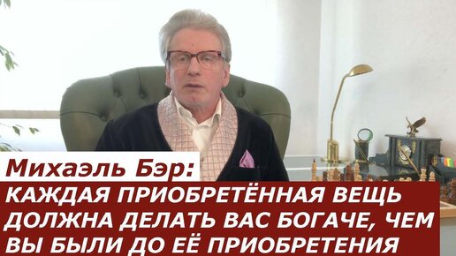 Михаэль Бэр: КАК СТАТЬ БОГАТЫМ. КАЖДАЯ ПРИОБРЕТЁННАЯ ВЕЩЬ ДОЛЖНА ДЕЛАТЬ ВАС БОГАЧЕ, ЧЕМ ВЫ БЫЛИ ДО ЕЁ ПРИОБРЕТЕНИЯ.