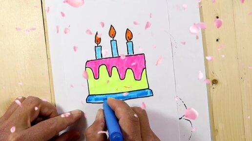 Рисуем и раскрашиваем картинку торта для детей.Drawing and painting a cake picture for children