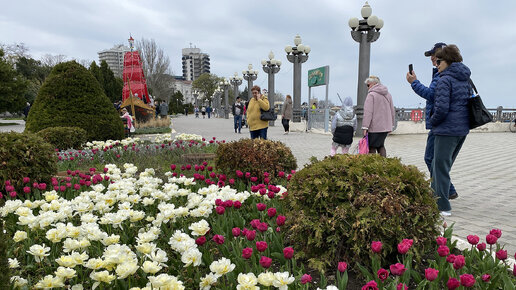 Анапа в апреле. В городе цветут тюльпаны. Белые, красные, желтые тюльпаны, столько красивых цветов в Анапе давно не было.