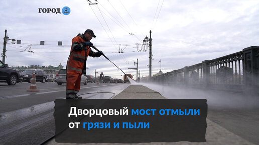 Сотрудники дорожных служб отмыли Дворцовый мост от песка и пыли