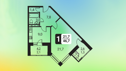 Однокомнатная квартира с двумя балконами
