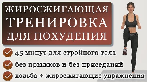 Жиросжигающая тренировка для похудения на 45 минут полностью стоя без приседаний и без прыжков (ходьба + упражнения на все тело)