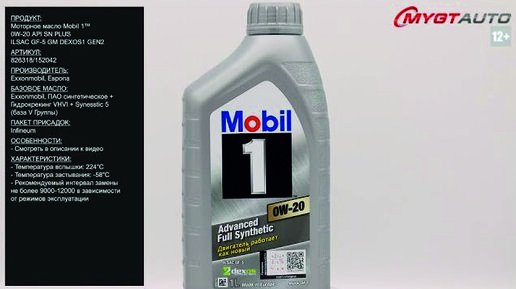Моторное масло Mobil 1™ 0W-20 API SN PLUS ILSAC GF-5 GM DEXOS1 GEN2 152042 #ANTON_MYGT