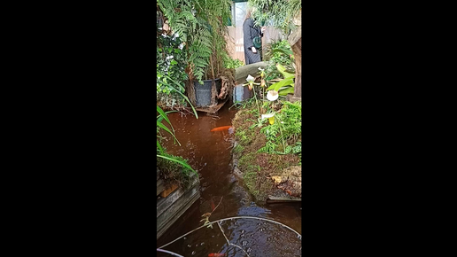Деревья, кустарники, водоём и рыбы в субтропической оранжерее Ботанического сада МГУ "Аптекарский огород" в Москве