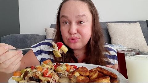 МУКБАНГ💥ЛЕТНЕЕ МЕНЮ💥Сама приготовила👩🍳ВОТ ЭТО ПОРЦИЯ😋Немножко нервничаю😒