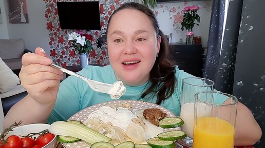 МУКБАНГ💥ПЕЛЬМЕШКИ🥟ОВОЩИ🍅🥒МОЛОЧКО🥛ОБОЖРАЛАСЬ🤦♀️