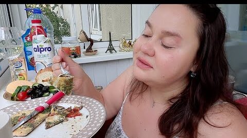 МУКБАНГ💥ОМЛЕТ🥘с шампиньонами🍄черный КОФЕ☕Овощи🥒🍅Вкусное НАЧАЛО ВЫХОДНЫХ😋