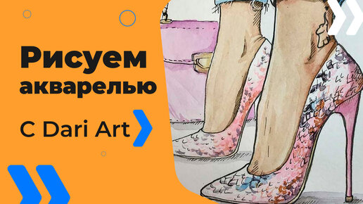 Бесплатный урок рисования! Рисуем акварельный скетч с туфлями! Для начинающих!