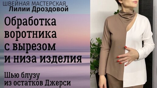 Обработка воротника "Стойка с драпировкой и каплевидным вырезом". Обработка низа блузы из джерси.