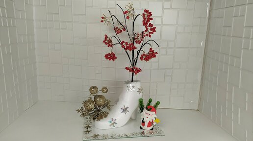 Работы из бисера . Сувенир к Новому году. Зимняя рябина. Мастер класс. Пошаговый МК для начинающих.
