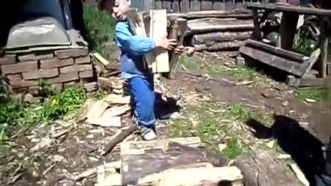 ВНУКИ ДВА БРАТА ПОМОГАЮТ ДЕДУ СКЛАДЫВАТЬ ДРОВА.