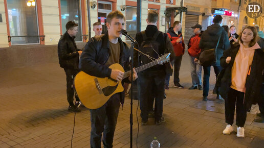 Талантливый музыкант Коля Комаров исполнил в Москве на Арбате свою авторскую песню