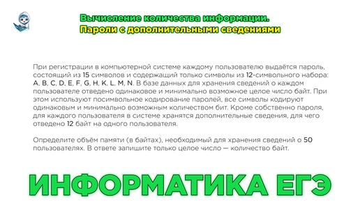 Информатика ЕГЭ. № 11. Вычисление количества информации. Пароли с дополнительными сведениями. № 8101